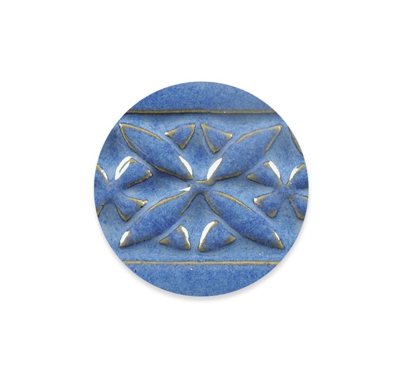Amaco PC A strong blue glaze with a lighter blue flow in the surface. Where the layer is thin, the color breaks into a deeper blue tone, giving clear contrasts and a vibrant expression. The glaze is suitable for layering and can be combined with other glazes for varied surface effects.